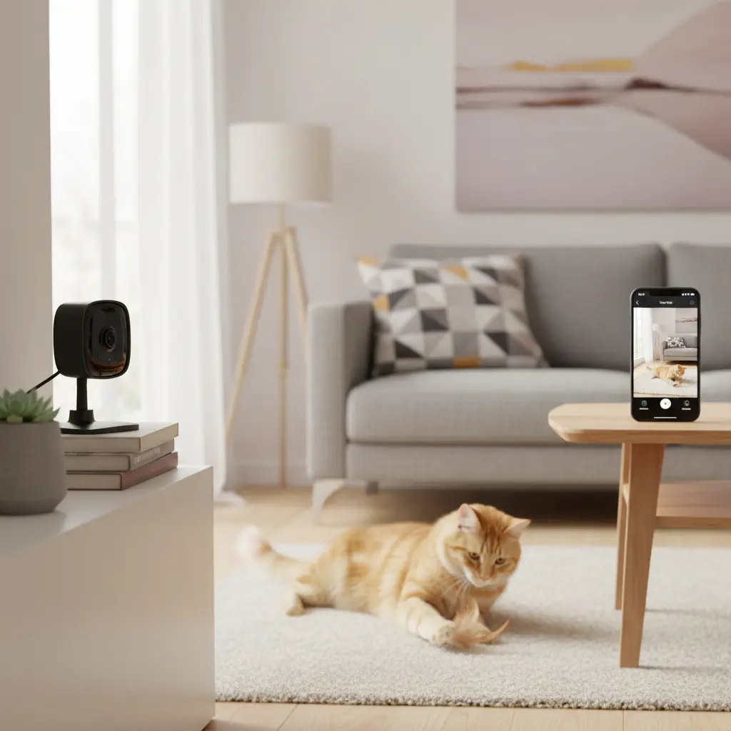 Built-in microphone and speaker allow you to listen and speak through the camera in real time — great for calming pets or talking to a visitor when you’re not home.